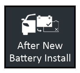 Use After New Battery Install to test a newly installed battery in a vehicle. Where applicable, the process will also include registering the battery in the vehicle and a Reset Electronics checklist.